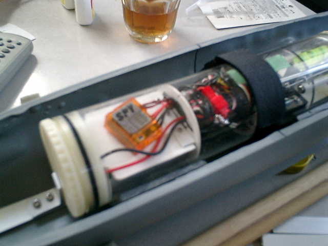 これからの製作は、強度が弱いソフトビニール製の船体に対して、ラジコン潜水艦としての 仕掛けを組み込む為に、各パーツの現物合わせしながら位置決めを行っていきますので、全 体の位置決めの中核である汎用WTCを格納する事から考え、製作を開始しました。