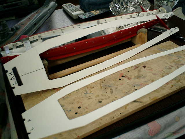 → それぞれの船体(上下部)用で、2枚作ったが・・・ なんか、変だな〜 (^^?