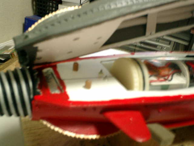 ●船体(上部)の先端部が、まったく合わないので・・・ 無理やり合わせる事にしますので、ぜい肉部分を切除しました。(^^;