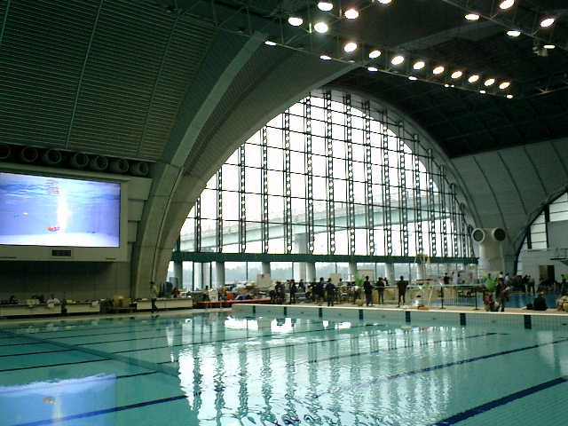 (会場:東京辰巳国際水泳場) 高速艇のアクアレーサー群に混じって、ノロノロ走行での試運転(レース?)です。 (^^;