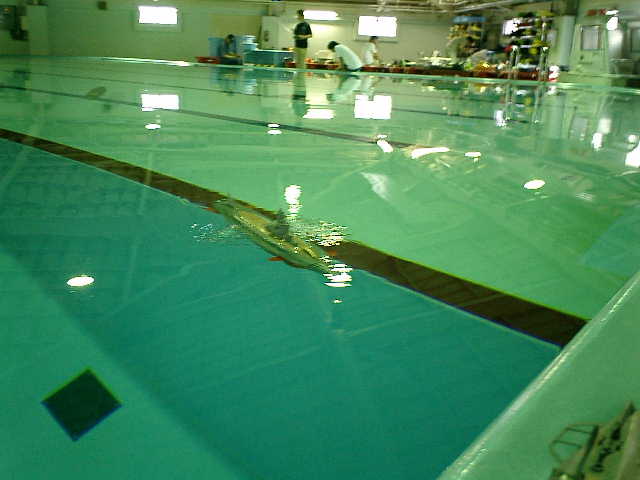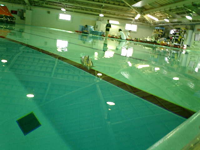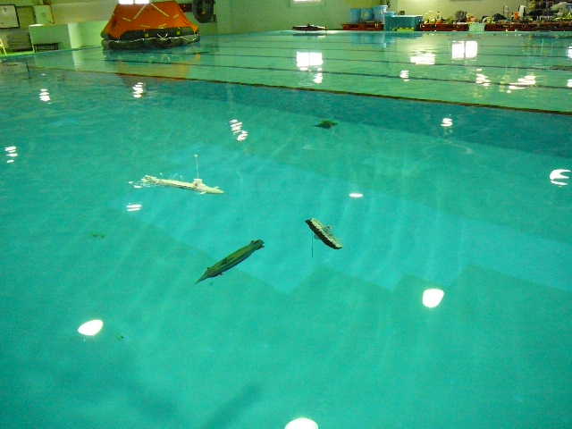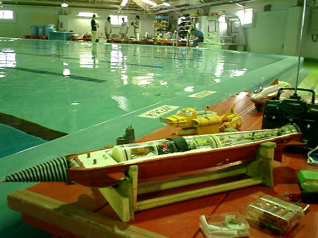 ●アクアモデラーズ・ミーティングでのテスト走行です。 海洋研究開発機構(JAMSTEC)一般公開の翌日に、継続してテスト走行を行いました。 ( 2007.05.13 追浜・潜水訓練プール アクアモデラーズ・ミーティング )