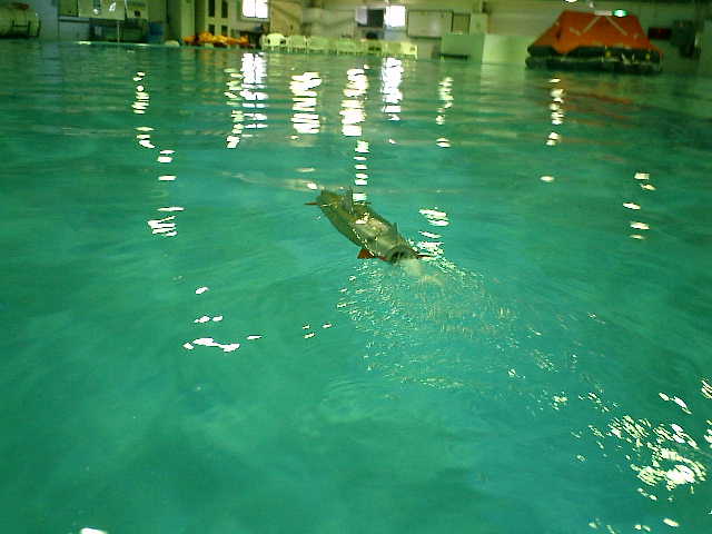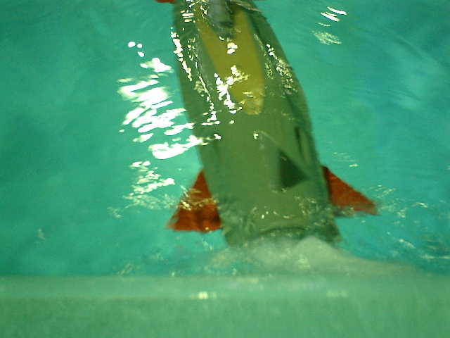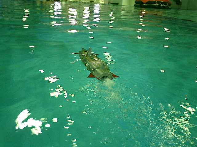 ■テスト走行の感想は・・・ ・水中走行が、ある程度のレベルで安定していたのが良かったです。 ・自力潜航ができませんでしたが、今回のプール内状態は、いつもと違っていてイレギュラ ー的な環境下でのテスト走行になりました。現状のセッティング状態での再テスト走行が 必要な感じです。・・・ まいったな〜 (^^;