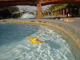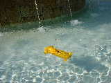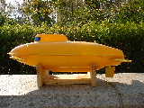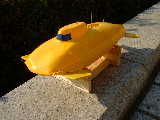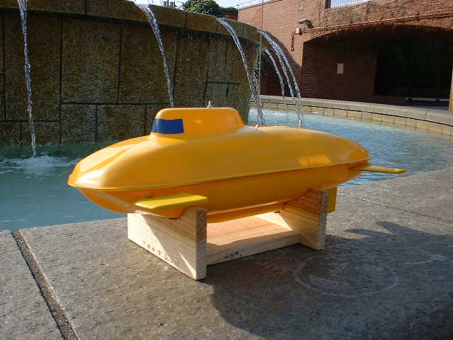 バランス調整ができていないが、それでは、発進してみよう。 ■1回目のテストより、更に、コントロールが難しい。 ■特に、潜航した時は、急速潜航されて、水底に当たってしまった。 深く潜れるように、船体形状の設計がされているのかな?
