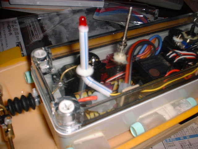 メカボックスに穴を開けて、ストローを通して、LED(発光ダイオード)を装着した。 後で、PICを使用して点滅させる予定である。 → 穴部分は、分厚かったので、電動ドリルが必要・・・ 手動では、しんどいかな〜