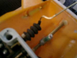 ●舵ロットの作成 ■舵側ホーン/サーボに合わせて、真中丸棒(2mm)を、U字に曲げてから、防水ブーツの穴から通して調整する。 ↓