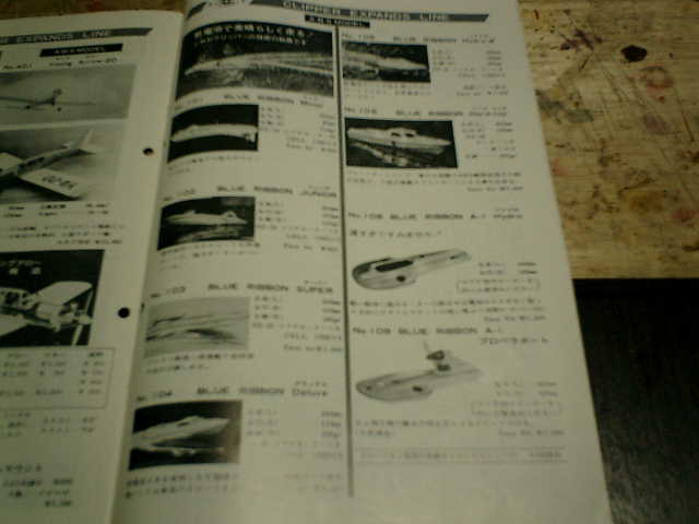 ●ブルーリボン シリーズ このカタログに高性能模型ボートの『 ブルーリボン シリーズ 』が掲載されていました。 衝撃、曲げ、圧縮などに強くて、軽い船体(ABS樹脂)のブルーリボンは、乾電池で素晴 らしく走るクリッパーの技術の結晶だと思われます。子供の頃に現物を実際に見ていまして 水面を飛んでいる感じでの爆走的な走行をしていた記憶があります。