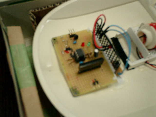 PICとモーターコントロールIC(MP4212)への電源供給は、同一系統内(直列) で配線しており、これにより動作時に電圧降下してパワーダウンしたと感じられました。 電圧降下事象への対応として、個々に分離しての電源供給が必要と思われましたので・・・ 電気消費の集中使用を避けて、分散使用できるように並列系統電源供給への変更に伴う 配線組み替えを行う事にしました。 但し、電源接続元は、従来通りの受信機からとなりますが・・・ 大丈夫かな (^^?