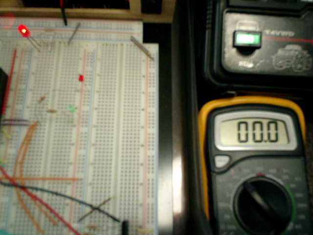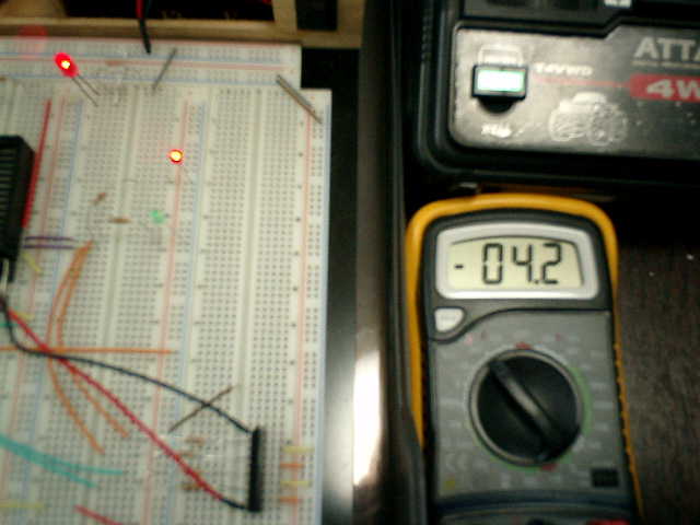 → 赤色LED点灯! 4.2Vです! これも、オーバーしているが・・・ (^^;