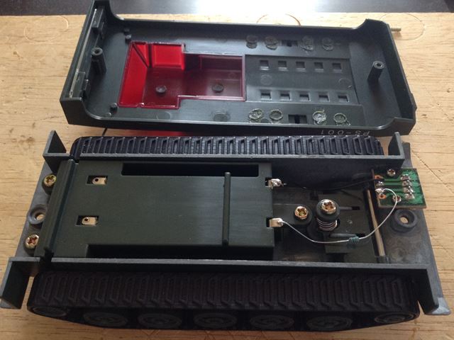●装軌装甲車の内部です。 メーサーの電飾で単3電池(2本)を使用しますが、モータ走行できないようです。