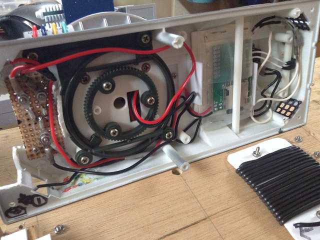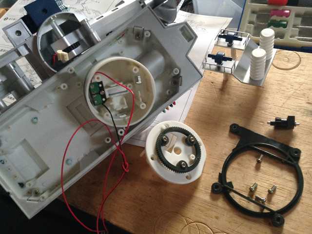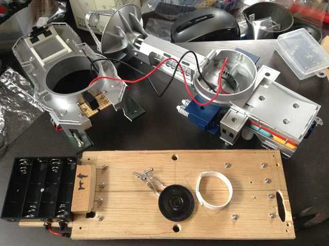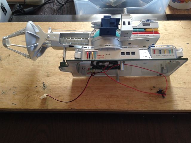 ●サウンド機能を装備したいので・・・ 劇中(サンダ対ガイラ)でBGMを流しながら、ガイラと決戦するメーサー車の登場シー ンが好きですので、車体の中にMP3プレイヤーのボードを装備することにしました。
