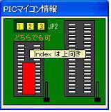 ↑ PICマイコンの挿入位置と方向、ジャンパーピンの設定要領を指示してくれます。