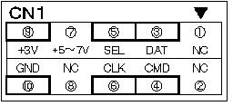 @ : NC A : NC ○ B : DAT ○ C : CMD ○ D : SEL ○ E : CLK F : +5〜7V G : NC ○ H : +3V ○ I : GND → 使用ピン(○印)は、これで、いいのかしら (^^?