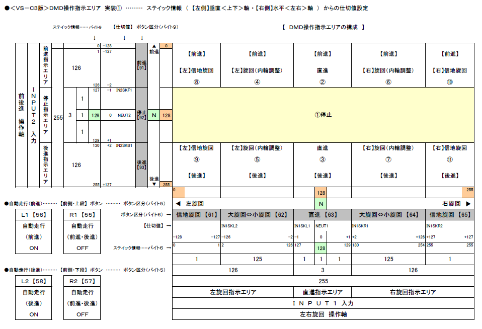 LED(7) … 61 : 000 ステイック【右】水平軸 ← 左(信地旋回)