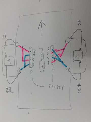●モーターとFETアレイ間の配置と結線です。……… クリックすれば、拡大します。![]()