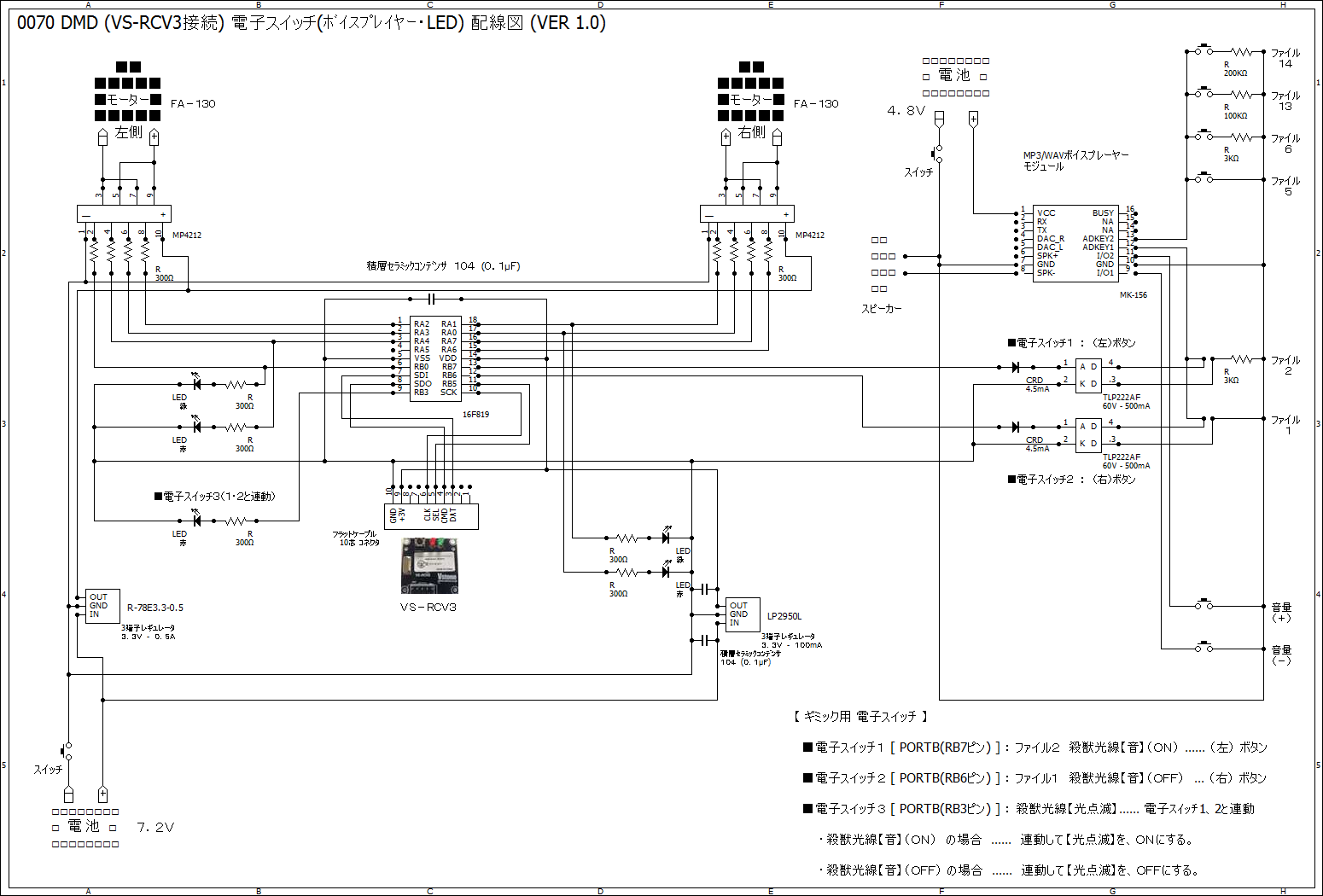はじめに・・・ DMD(VS−RCV3用)に、電子スイッチ機能を組み込んで実践する事にしました。