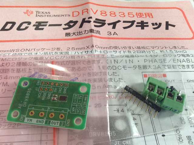 ●参考です。 デュアルモーターのドライバ ( DRV8835 )を、搭載しており ……… 1個のモータのみ駆動( 最大3A )できるキットの使用も、いいかも。 【 DRV8835使用 DCモータードライブキット 】