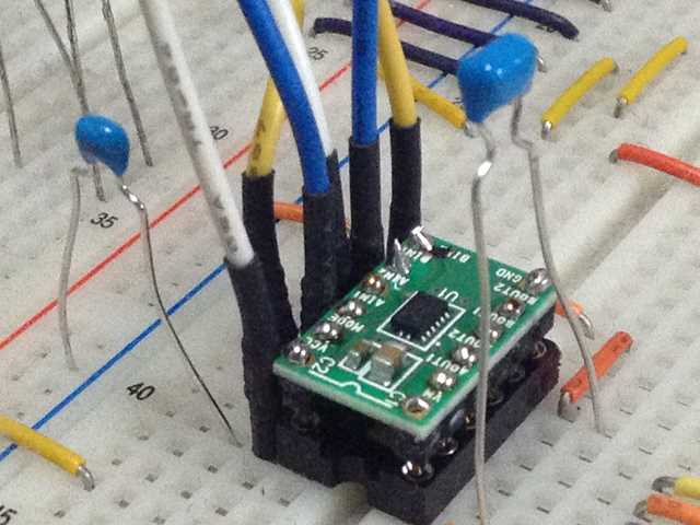 ●従来使用のFETアレイ ( 東芝:MP4212<5A>、日立:4AM12<8A> )に比べたら ……… @1モータに対しての制御線(4本→2本)が、2本減りました。 これに伴い、PIC側からの接続ピン(4ピン→2ピン)も2ピン減りますので、 空いたピンを他の用途で活用できます。 A最大出力が3Aですので、パワーダウン(ドライブ能力)です。 1回路(Hブリッジ): 1.5A ( 2回路あるので、並列接続すれば最大3A ) B1個の当該ドライバ(DRV8835) で、2モータを、コントロールできます。 DMDとして動かしましたが、汎用のノーマルモーター(FA-130)では、パワー不足に よりNGでしたが、低消費電流(低回転型130) モーターでは、使用できました。