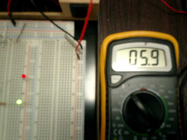 → 緑色LED点灯! 5.9Vです! よーし!