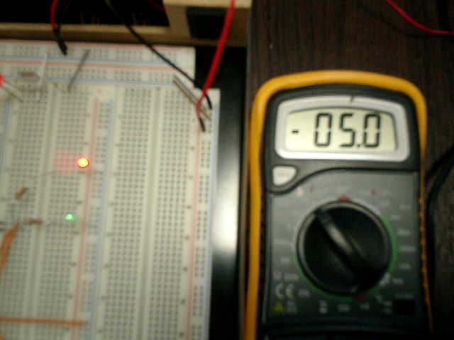 → 赤色LED点灯! 5.0Vです! よーし!