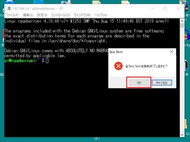 → これで、このラズパイにリモート接続できます。