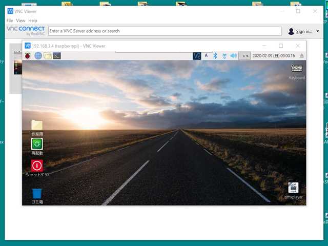 → これで、このラズパイにVNC接続できます。