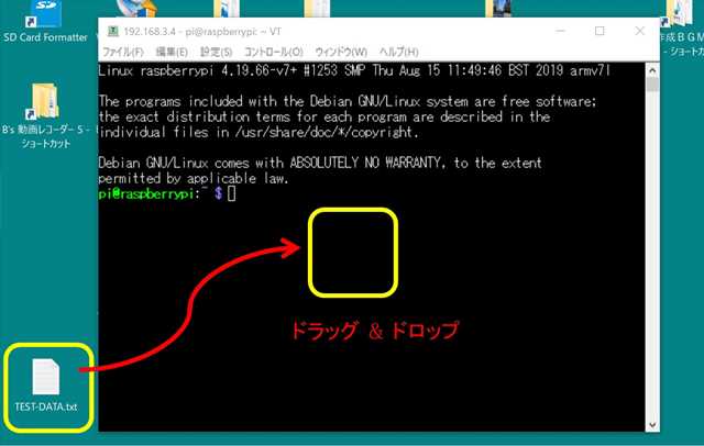・ ・ ●パソコン 「 Tera Term 」操作で …… ・ ・ ・ アップロード ( パソコン → ラズパイ )します。 ・