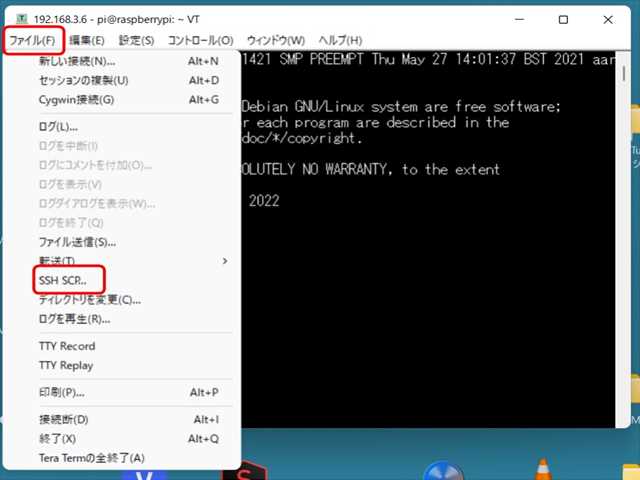 【 ファイル 】 → 【 SSH SCP 】