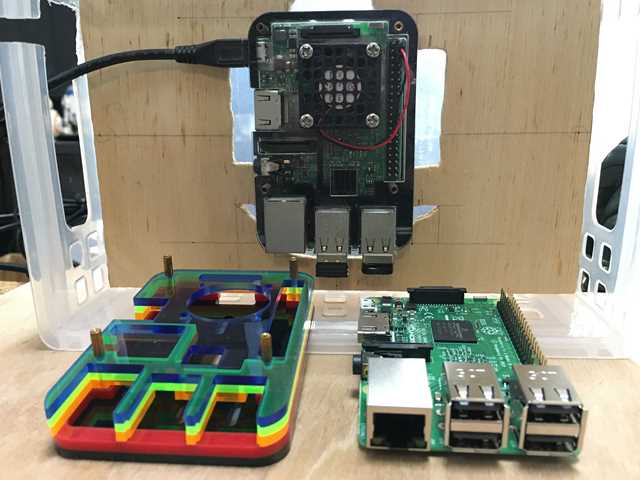主な、機器類です。 ・Raspberry Pi3 Model B(ラズベリーパイスリーモデルビー) element14版 ・スイッチング ACアダプター 5V2.5A AD-B50P250 ・USBケーブル Aオス-マイクロBオス0.5m A-microB」 ・TOSHIBA マイクロSDカード(microSDHC) EXCERIA 16GB 100MB/s ・HDMIケーブル - 0.9m (タイプAオス - タイプAオス) ・ディスプレイは、32V型のテレビです。 ・電源スイッチは、AC電源のスイッチを使用しています。