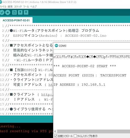 → ESP02のプログラム中に、アクセスポイント処理を組み込んでいます。