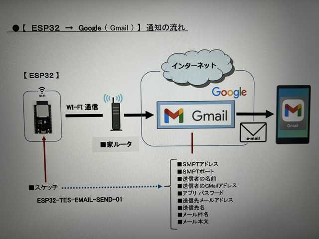 ・ ・ ・ ●ESP32から … メール送信する方式です。 ・ ・